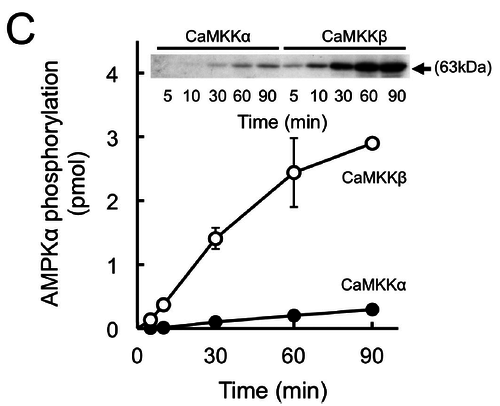 In vitro phosphorylation of AMPK by recombinant CaMKK isoforms (Fujiwara 2016) [13].